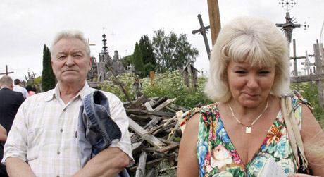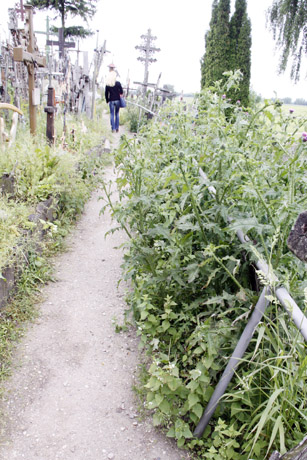 Pro kryžių krūvą praeidami vilnietis Vladas Baliukevičius tik juos apžiūri ir nueina į kalno gilumą.