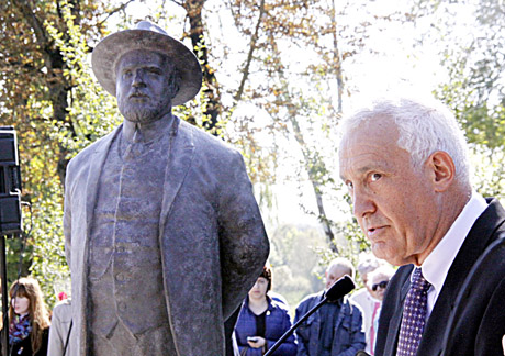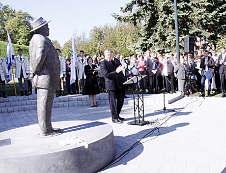 INICIATYVA: Ch. Frenkelio paminklo atidengimo ceremonijoje sveikinimo žodį tarė 25-metį mininčios Šiaulių pramonininkų asociacijos prezidentas Alvydas Stulpinas. Asociacija inicijavo paminklo statybą.