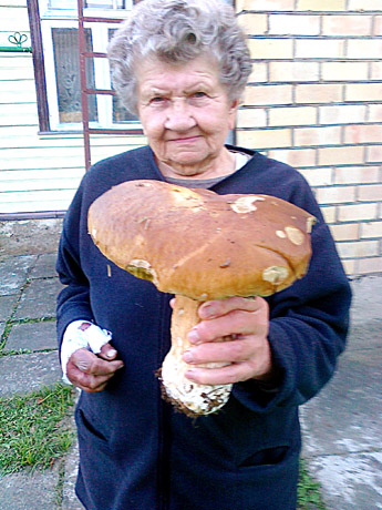MILŽINAS: Kuršėnų gyventoja J. Lukošienė rankose laiko baravyką „milžiną“, kurį spalio 4 dieną Papilės miškuose (Akmenės r.) rado jos dukra. Baravykas buvo tvirtas, svarbiausia – nesukirmijęs, todėl visas buvo panaudotas grybienei virti.