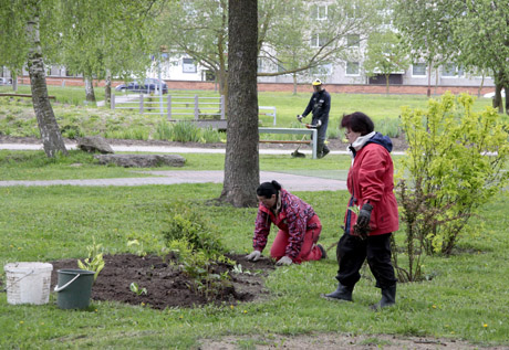 Parke vyko paruošiamieji darbai: šienaujama teritorija, sodinamos gėlės.