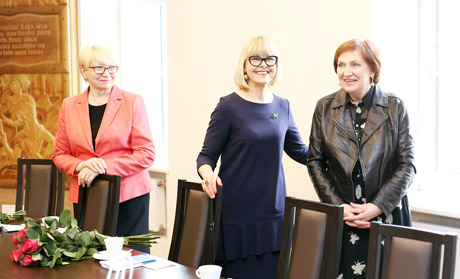 Nacionalinės bibliotekų savaitės proga Savivaldybėje besisvečiavusios (iš kairės) Šiaulių universiteto bibliotekos atstovė vyriausioji bibliotekininkė Vida Steponavičienė, Šiaulių apskrities P. Višinskio viešosios bibliotekos direktoriaus pavaduotoja Regina Miežetienė ir Šiaulių miesto savivaldybės viešosios bibliotekos direktorė Irena Žilinskienė kalbėjo apie pozityvius bibliotekų pokyčius, progresą.