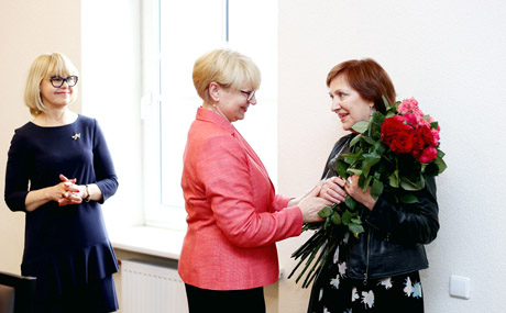 Bibliotekininkės pasveikino kolegę Ireną Žilinskienę, kuriai neseniai suteiktas Geriausio praėjusių metų bibliotekos vadovo vardas.