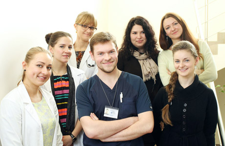ATEITIS: Respublikinėje Šiaulių ligoninėje praktiką atliekantys (iš kairės) Eglė Gružaitė, Reda Vaitkevičiūtė, Rūta Žvirblytė, Diana Vasčekienė, Toma Mikalauskaitė, Monika Kazlauskienė bei Andrej Aleinik (centre) savo profesinę ateitį mato gimtajame krašte.