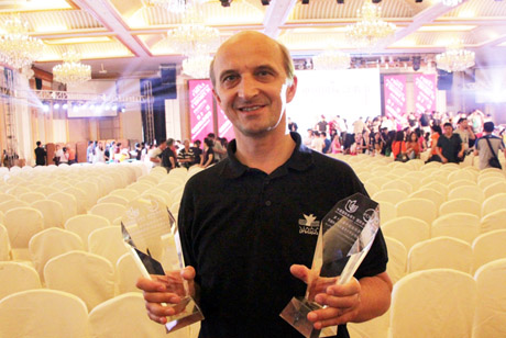 PRIZAI: „Dagilėlio“ meno vadovas Remigijus Adomaitis su apdovanojimais.