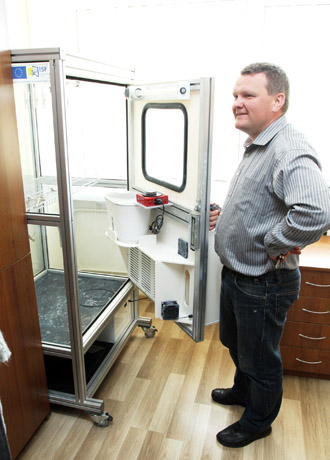 ĮRANGA: Šiaulių apskrities policijos Kriminalistinių tyrimų biuro viršininkas Vaidas Kazlauskas prie pirštų pėdsakų ryškinimo kameros.