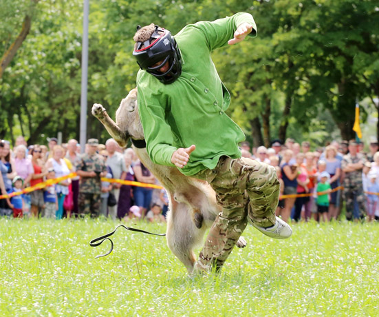 Parodomąsias programas Šiaulių gyventojams vakar pademonstravo tik keli iš 160-ies VSAT turimų keturkojų. Tačiau to pakako, kad žiūrovai būtų priblokšti, kaip tarnybiniai šunys išmokyti klausyti savo kinologo komandų, kaip seka kiekvieną jo žingsnį ir gestą.
