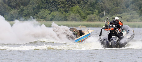 Kateriai, paprastai vykdantys laivų kontrolę ir pažeidėjų persekiojimą, skrodė Talkšos vandenį tol, kol pavyko užspeisti dūmuose paskendusį kontrabandininkų laivelį.