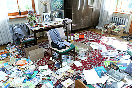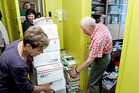 VERTYBĖ: Knygos – Broniaus Prėskienio ir jo žmonos ilgus metus kauptas turtas, dėliojamas į dėžes.