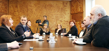 SU­SI­TI­KI­MAS: Tarp­tau­ti­nės gi­dų die­nos pro­ga į Šiau­lių mies­to sa­vi­val­dy­bę šven­ti­nio po­kal­bio pa­kvies­ti gi­dai kal­bė­jo apie dar­bo džiaugs­mus, ap­ta­rė pa­ste­bi­mas tu­riz­mo pro­ble­mas.