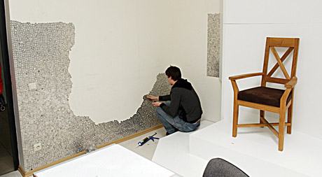 Idėjos įgyvendintojai sakė, jog stinga savanorių centams klijuoti. O centai atnešami ir maišais, ir siuntomis siunčiami.