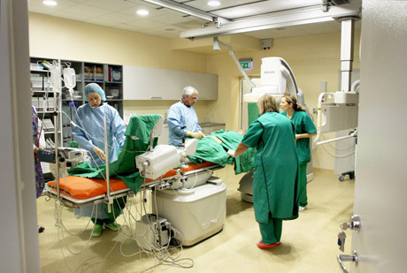PAGALBA: Intervencinės kardiologijos poste teikiama skubi pagalba ūmiu miokardo infarktu sergantiems pacientams.