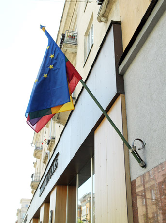SĄJUNGA: Europos Sąjungos ir Lietuvos vėliavos jungiamos jau ant vieno koto.