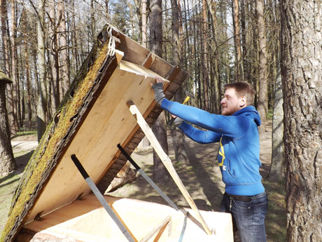 Savanorį iš Italijos Giovanni Coppola sutinkame šalia Tytuvėnų regioninio parko direkcijos – vaikinas padeda meistrauti senovinius avilius. Italijoje tokių avilių nėra, savanoriui šis darbas – nauja ir naudinga patirtis.