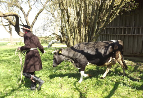 Sode prie obelų pririštus gyvulius tris kartus apibėgo piemenėlis (bubiškis Robertas Radžvilas). Dabar jau jie neišsibėgios, karvės bus pieningos ir veršingos.