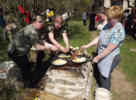 Dėl to paties ir sodo pakraštyje rūko dūmai: buvo kepama kiaušinienė. Ja stiprinosi visi.