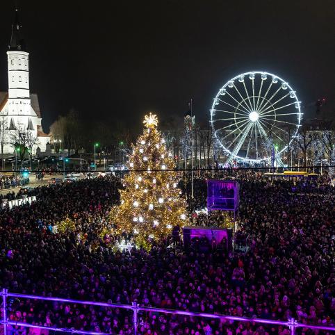 Gruodžio 19-osios vakarą Prisikėlimo aikštėje skambės kalėdinė giesmės, jas giedos choras „Atžalynas“ (vadovas Mindaugas Žalalis). Prie choro kviečiami prisijungti visi miestiečiai.