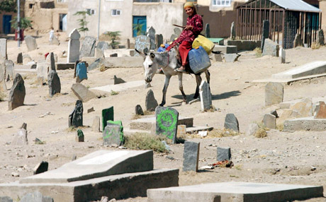 AFGANISTANAS: Per Afganistano sostinės kapines ant mulo joja mergaitė.