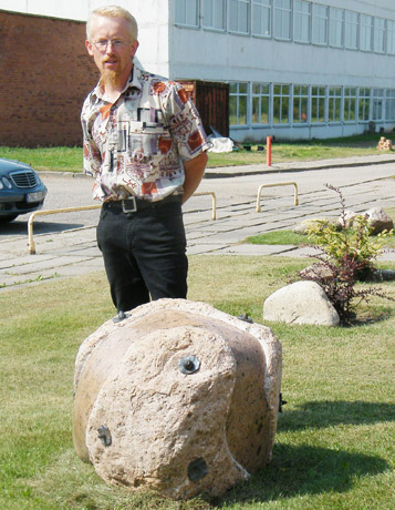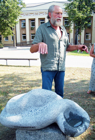 RATAS: Kelmiškio akmentašio, meno kūrėjo Valdo Bandzos skulptūra skirta Kelmės 530 metų sukakčiai.