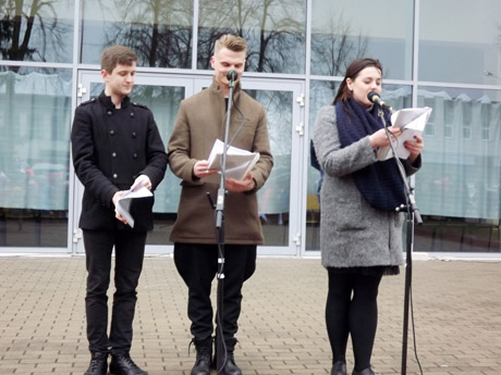Didžiulei miniai žmonių Kelmės mažojo teatro aktoriai atliko meninę improvizaciją „Magdutė“.