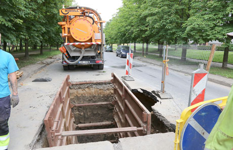 Tačiau nauja kelio danga džiaugtasi neilgai. Šiemet į Lieporių gatvę vėl sugužėjo meistrai. Šįkart – keisti pratrūkusio seno nuotekų vamzdyno.