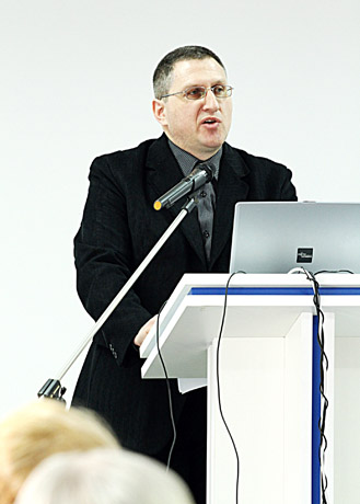 PRANEŠĖJAS: Istorikas Dangiras Mačiulis vakar skaitė pranešimą apie Kražių skerdynes bei jų virsmą laisvės kovų simboliu. Šiandien išvažiuojamajame posėdyje istorikas kalbės tema „Kryžių kalnas – kaip istorinės atminties vieta“.