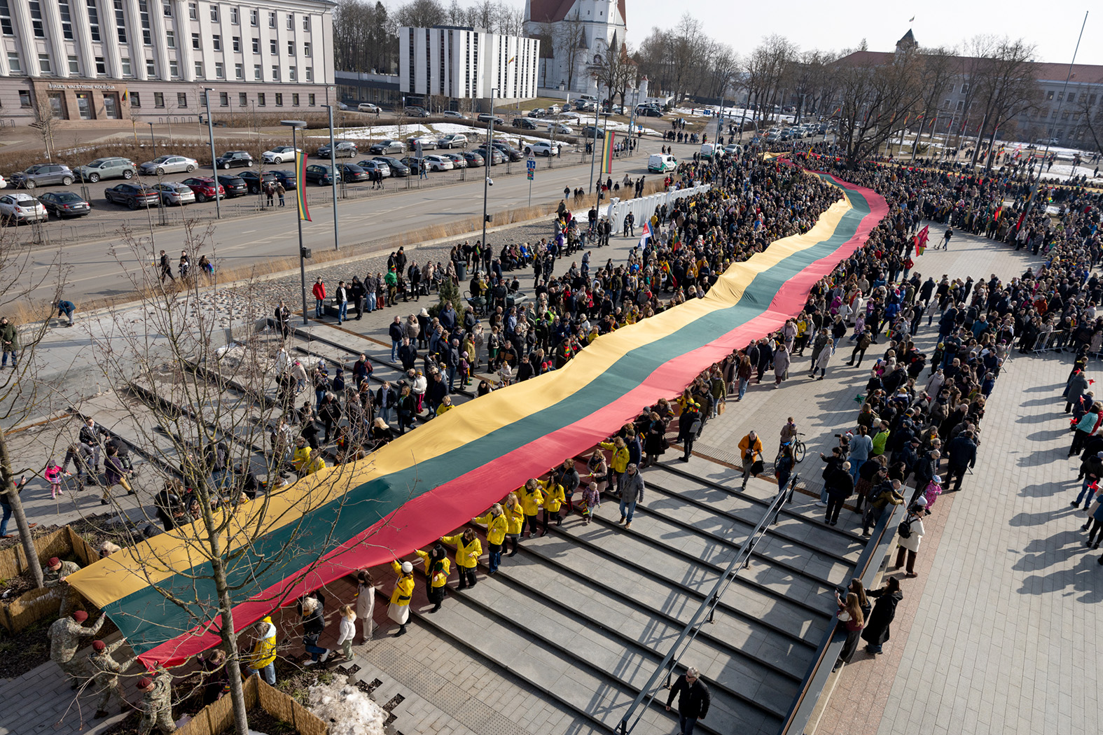 Saulėtą Kovo 11-osios rytą nuo Šiaulių arenos į Prisikėlimo aikštę pajudėjo Krašto apsaugos savanorių pajėgų Prisikėlimo apygardos 6-osios rinktinės organizuoto trispalvės žygio „Lietuva mūsų širdyse“ dalyviai. Tryliktą kartą vykusiame žygyje 300 metrų ilgio trispalvę nešė ir ją lydėjo gausus būrys žmonių – nuo vaikų iki senjorų.