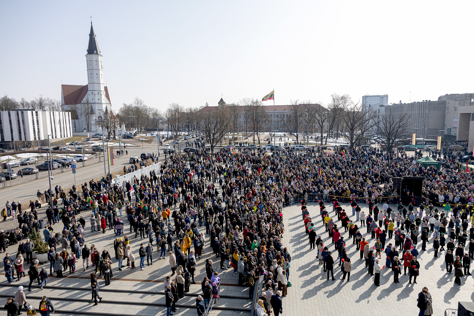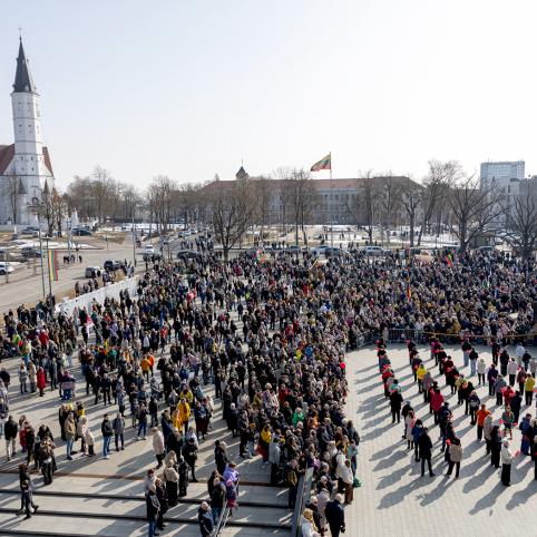 Vidurdienį Prisikėlimo aikštėje vyko Kovo 11-osios minėjimas.
