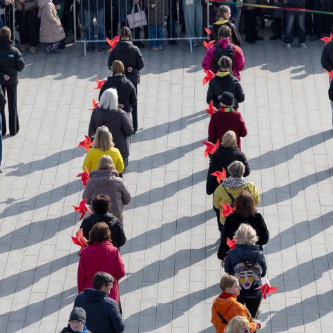 Per 200 dalyvių susivienijo masiniam malūnėlių šokiui – trispalviai malūnėliai sukosi pagal grupės „Kitava“ dainą „Žemė mano“.