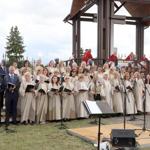 „Visi piligrimai, atvykstantys čia pasimelsti, – tiek lietuviai, tiek iš viso pasaulio, mato nepajudinamai tikinčią lietuvių tautą, kuri per okupacijos metus, kai trūko laisvės, aplink bujojo tamsa ir komunizmo žiaurumas, atlaikė savo tikėjimą“, – lietuviškai kalbėjo apaštalinis nuncijus.
