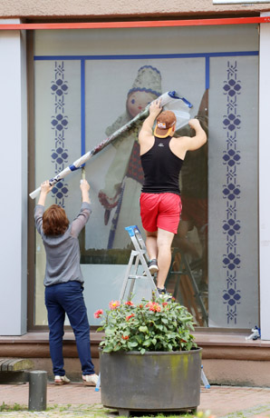 Va­kar nu­plėš­ti ant lan­gų ka­bė­ję lė­lių pla­ka­tai. Mu­zie­jaus va­do­vė Da­nu­tė Ma­žei­kai­tė sa­ko, kad dau­giau nei tūks­tan­čio lė­lių ko­lek­ci­ja jau su­skirs­ty­ta į rin­ki­nius ir su­krau­ta į dė­žes.