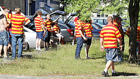 PULKAI: Prie Šiaulių centrinio stadiono buriavosi pulkai sirgalių – neagresyvūs, bet ir neblaivūs.