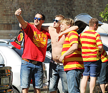 Lenkų sirgaliai gausesnėmis kompanijomis mieste pasirodė gerokai po pietų, pavieniai – išvakarėse arba iš ryto.