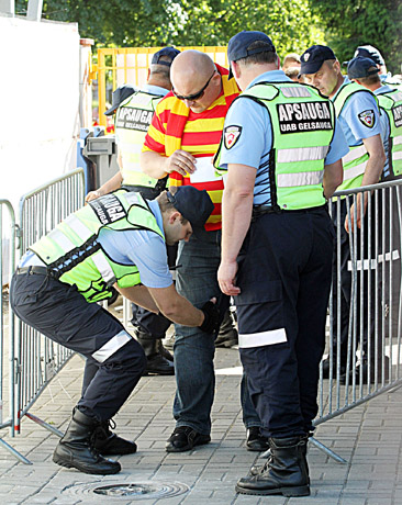 APIEŠKA: Prieš patekdamas į stadioną kiekvienas futbolo sirgalius buvo apieškotas.
