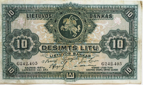 Lietuvoje nacionalinė valiuta litas įvesta į apyvartą nuo 1922 m. spalio 1 d. Jo aukso turinys buvo lygus 0,150462 g grynojo aukso, JAV doleriui prilygintas santykiu 10:1.