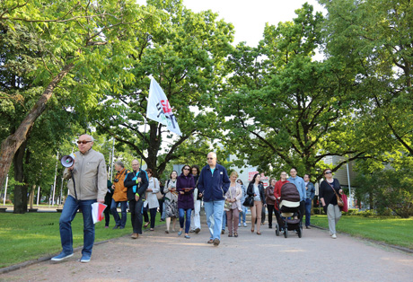 „Susirinkome iš naujo atrasti Šiaulių istoriją, apie kurią pasakoja atmintini ir istoriniai medžiai“, – pažintinės išvykos dalyvius Prisikėlimo aikštėje pasveikino J. Nekrašius. Jį apsupo dvi dešimtys šiauliečių: išvyką organizavę Šiaulių gamtos ir kultūros paveldo apsaugos klubo „Aukuras“ nariai ir Šiaulių esperantininkai bei miesto gyventojai.