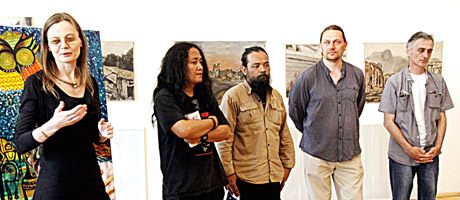 DALYVIAI: Parodą atidarė festivalio „Anim mundi“ koordinatorė Z. Vilutytė. Vėliau kiekvienas autorius pristatė savo kūrybą. Iš kairės: Z. Vilutytė, R. Murdock, Debronzes, S. Jankauskas, A. Lomadze.