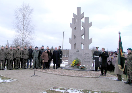 ŠVENTĖ: Radviliškio rajono Minaičių kaime, Miknių_Petrėčių sodyboje, prie 1949 metų Deklaracijos memorialo, pagerbti 1949 metų vasario 16-osios Nepriklausomybės deklaracijos signatarai, paminėta Valstybės atkūrimo diena.