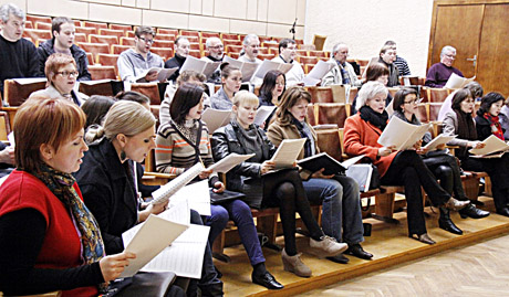 IŠVAKARĖS: Festivalio „Resurrexit“ išvakarėse vyko Šiaulių valstybinio kamerinio choro „Polifonija“ repeticija.
