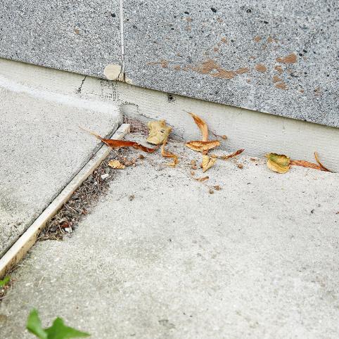 Žmogus rodo išsikraipiusias ir suskilinėjusias betonines nuogrindas aplink pastatą, vandenį praleidžiantį ir jau pilkomis dėmėmis išvagotą laiptinės stogelį. Viename balkone pakankamai neužsandarinta, žiemą įstiklinto balkono viduje kabo varvekliai. Neužsandarinta aplink angą, per kurią galima užlipti per stogą. Kiek anksčiau po liūties vanduo pliūptelėjo į laiptinę. Tiesa, R. Rupšys patvirtino, kad statybininkai buvo pasirodę ir uždėjo slenkstį, tačiau paliko plyšius.