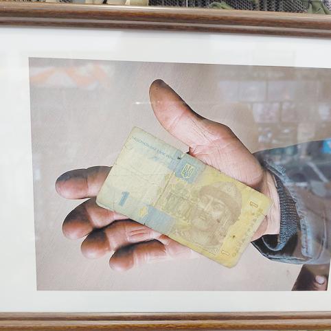„Du karai, dvi kontuzijos, du aukštieji išsilavinimai, todėl galiu kalbėti, ką noriu. Čia – mūsų savivaldybės gėda, – prie nuotraukos stabteli V. Poliakov. – Atėjo vaikinukas, rankos darbininko, purvinos, atnešė 500 grivinų, turbūt surinko po kapeiką, tos grivinos pas mus guli iki šiol – negaliu išleisti. Nufotografavome ranką, „priklijavome“ tas grivinas. Sakau: kai šalia bus dar vienas rėmelis su mūsų meru, perdavusiu bent vieną griviną pajėgoms, tada pradėsiu jį gerbti. Ne už tai, kad fotografuojasi prie kitų padedančiųjų.“