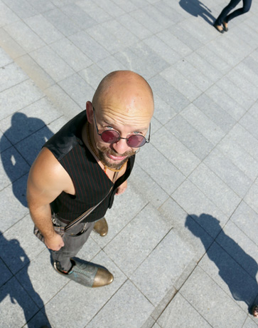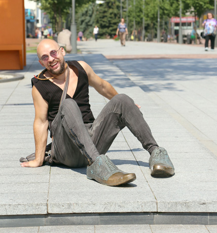 Su M. Gaubu susitinkame prie Šiaulių dailės galerijos, kur čia pat ant grindinio prieš dvejus metus „įkalta“ jo skulptūrinė kompozicija „Mano batai“. „Ooo, jau šiek tiek pakeitę spalvą“, – pavalo batų nosį menininkas.