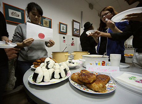 Šalia stalą ruošė ir studentės iš Japonijos. Ant stalo sušio nebuvo. Siūlė paragauti keptos kiaulienos ir „ryžių bombų“.