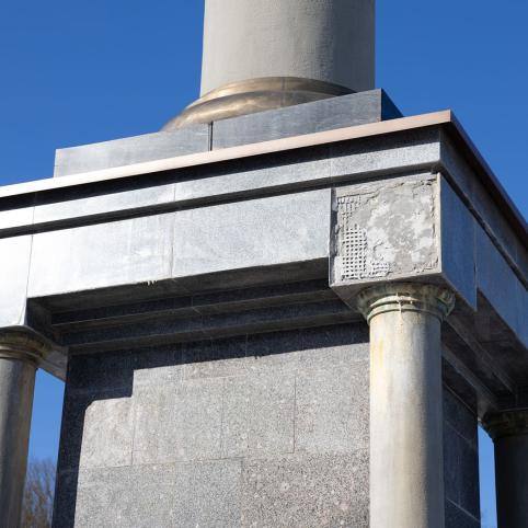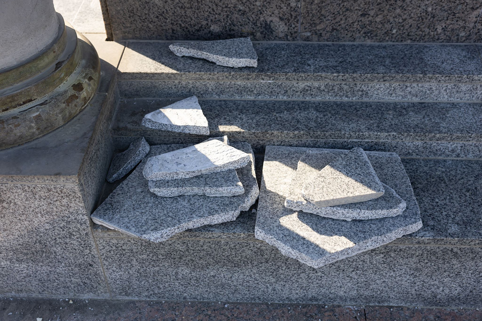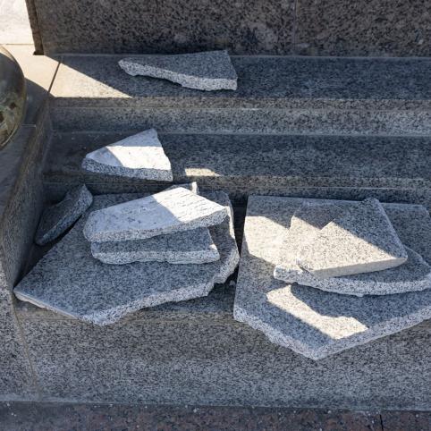 Nuo Saulės laikrodžio postamento nukrito granito plokštės.