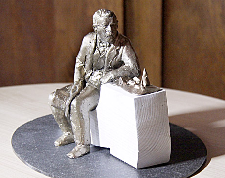 MAKETAS: Skulptorius Arūnas Sakalauskas konkursui pateikė maketą skulptūros, kurioje Chaimas Frenkelis vaizduojamas plastiškame judesyje – jis lengvai žengia pasiremdamas lazda.