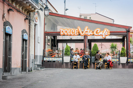 Nedidelis, apie 7 tūkstančius gyventojų turintis Italijos, Sicilijos regiono, Katanijos provincijos miestelis Nicolosi, įsikūręs šalia Etnos ugnikalnio. Fontanas miesto centre, priešais bažnyčią, airišką alubarį ir kavinaitę „La Dolce Vita“ (it. saldus gyvenimas) – pagrindinė vietinių susirinkimų vieta.