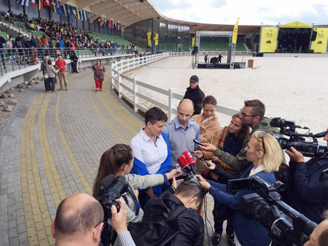 DĖMESYS: Nadija Savčenko bendravo su žurnalistais, tačiau renginio dalyviai jos paklausti progos neturėjo.