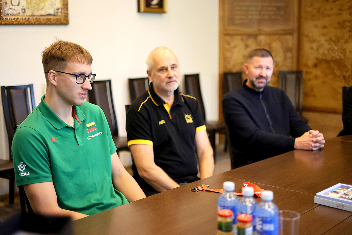 Tarp šios komandos narių – ir šiaulietis Kajus Leliukas. Šiaulių meras Artūras Visockas Savivaldybėje pasveikino čempioną ir jo buvusius trenerius Egidijų Vasiliauską ir Donatą Slaniną.