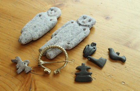 ISTORIJA: Kalvio Alberto Martinaičio pagamintos dovanos šokėjams – archeologinių radinių replikos.