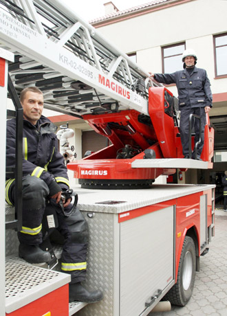 ATSAKOMYBĖ: Kolegos ugniagesiai gelbėtojai Žilvinas Šatkus (kairiau) ir Regimantas Savickis sako, kad kiekvieną gelbėjimo operaciją lydi didžiulė atsakomybė už gelbėjamą žmogų, už kolegą gelbėtoją ir už save.