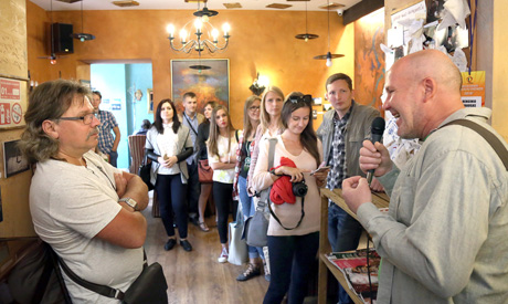 ATIDARYMAS: Parodos organizatorius ir fotografas R. Parafinavičius (dešinėje) su autoriais atidarė parodą „Nevaryk an petinia“.